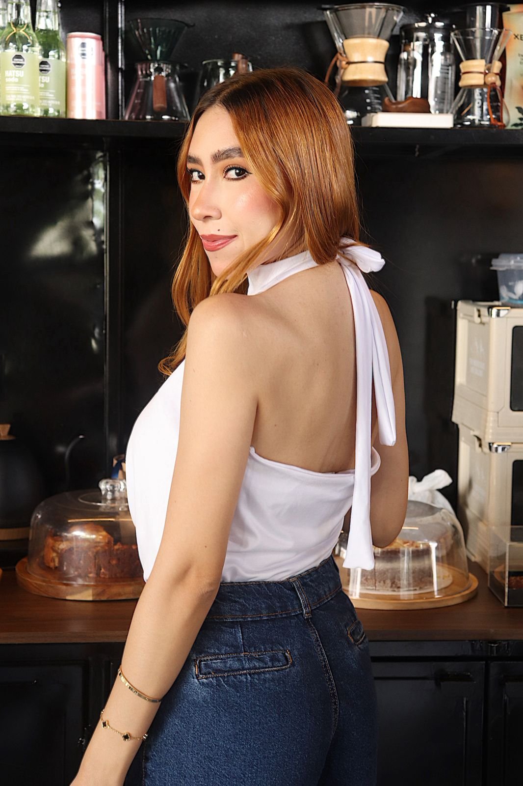 Blusa halter con escote protagonista que resalta tu feminidad con elegancia. Su diseño fluido y delicado se adapta al cuerpo brindando comodidad y un toque sexy sin perder sofisticación. Disponible en talla S y M.