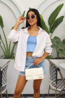 Diseñado para ser esa prenda versátil que no puede faltar en tu armario, el Blusón Siena está elaborado en popelina y cuenta con manga larga y corte oversize, ideal para usar como sobretodo o como pieza principal de tu look.